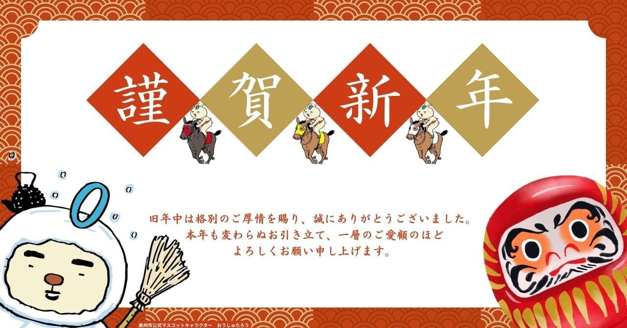 岩手県奥州市の公式マスコットキャラクター「おうしゅうたろう」のミニステッカーが登場です! 2026年の干支「馬」のイラストで、小さくても存在感抜群なデザインで、おうしゅうたろうの魅力をしっかり伝えます。 様々な場所に貼ったり、手帳やノートのデコレーションにもぴったり。あなたの日常に楽しいアクセントを加えてくれるアイテムです! ※サイズ タテ5cm×ヨコ5cm ※光沢ラミネート加工