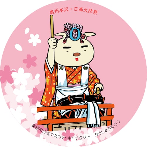 「おうしゅうたろう」が着飾ってお祭りに参加している可愛らしいイラストで、小さくても存在感抜群!おうしゅうたろうの魅力をしっかり伝えます。